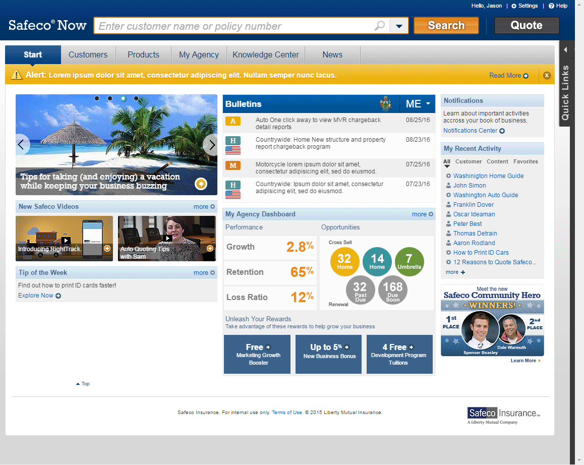 These tools accounted for a total of 15 billion dollars in annual revenue. Getting this right for both the Liberty Mutual captive agents, and the Safeco independent agents was imperative.