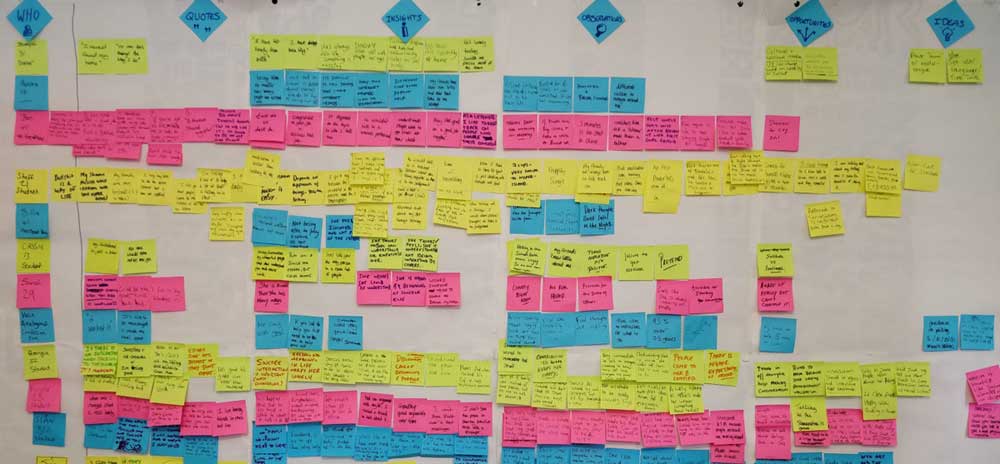 The data from the surveys and the interviews were then affinity mapped to capture themes.