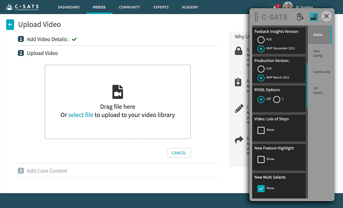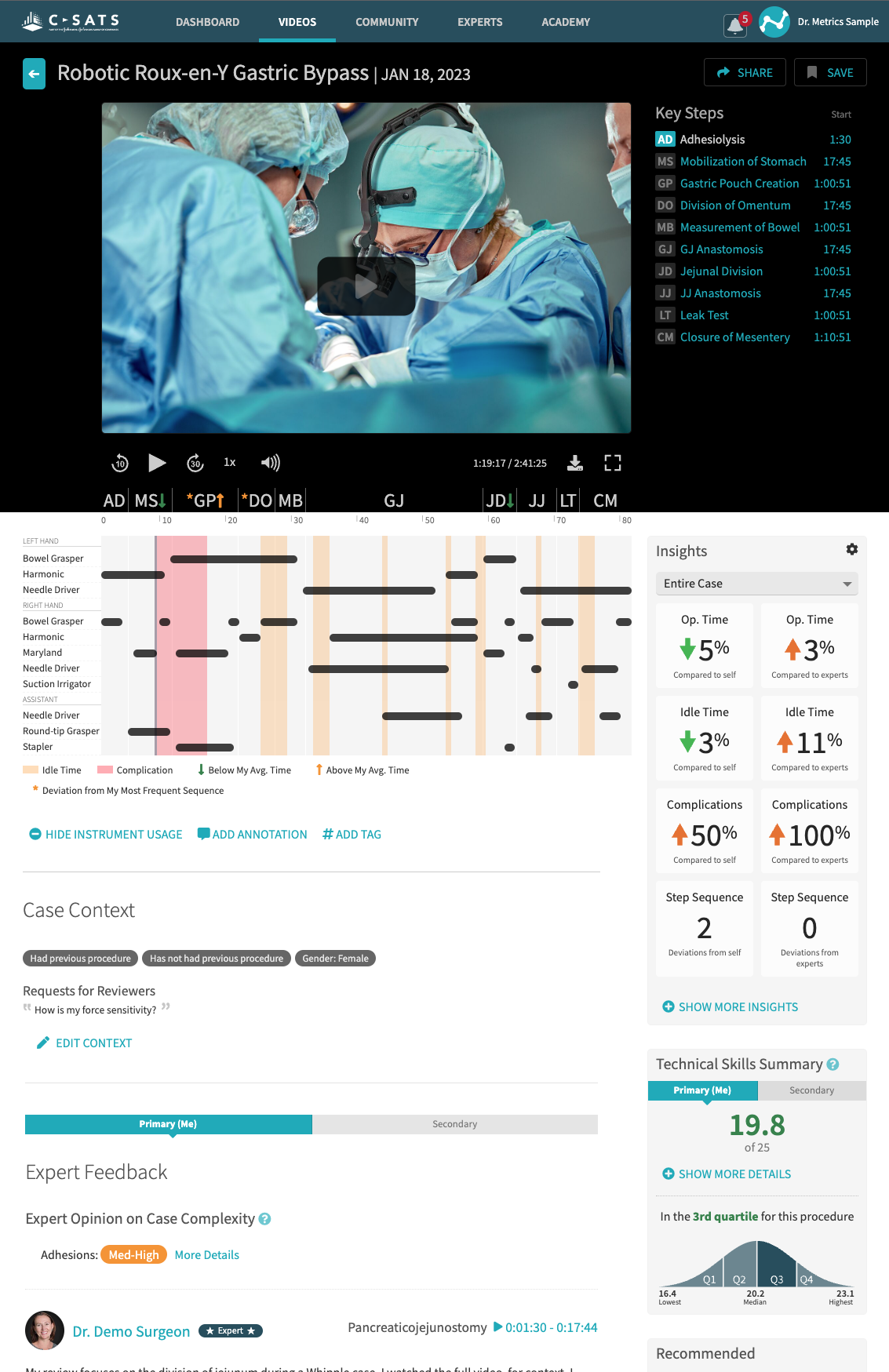 The primary products my team is responsible for are what make up the C-SATS platform. C-SATS is designed to help surgeons of all levels improve their proficiency through performance analytics, self-learning opportunities, and peer-to-peer interactions. This platform consisted of a SaaS web app, a mobile app, and an in-OR device.